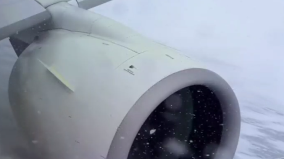 تصاویری از تیک‌‌آف هواپیما در یک روز برفی