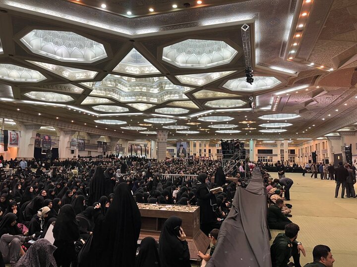 ۱۹:۱۰- یک ساعت مانده به شروع مراسم وداع با پیکر شهدا و نیمی از مصلی امام خمینی پر شده است.