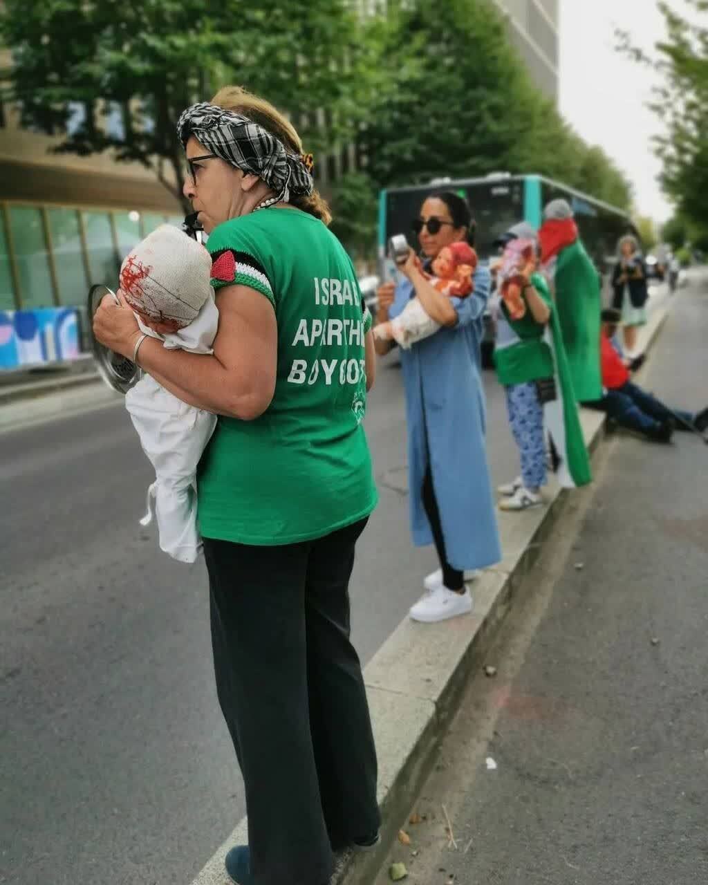 پایگاه خبری سند نیوز در کانال تلگرامی خود، گزارش داد: فعالان حامی فلسطین در فرانسه، تظاهراتی را برای محکوم کردن جنگ نسل کشی جاری در نوار غزه برگزار کردند. تظاهرکنندگان با در دست داشتن عروسکهایی از کودکان خونین فلسطینی و پرچمهای فلسطین، جنایتها و نسل کشیهای رژیم صهیونیستی را محکوم کردند.