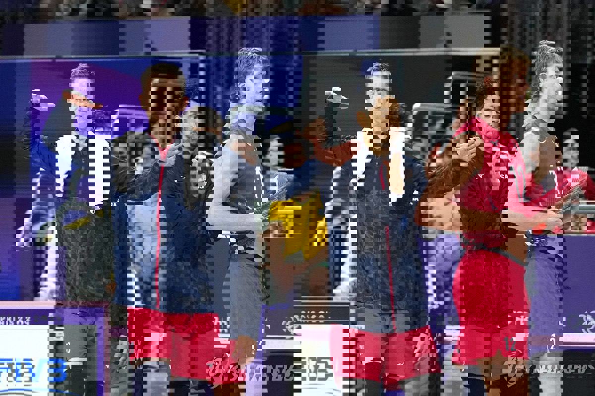 اسمیت، بازیکن میانی تیم والیبال ایالات متحده، در ست سوم مسابقه گروه C والیبال مردان مقابل ژاپن در المپیک پاریس که در در ساوت پاریس آرنا در پاریس فرانسه برگزار شد، به عنوان بازیکن تعویضی به میدان رفت و به پیروزی 3-1 تیمش کمک کرد.