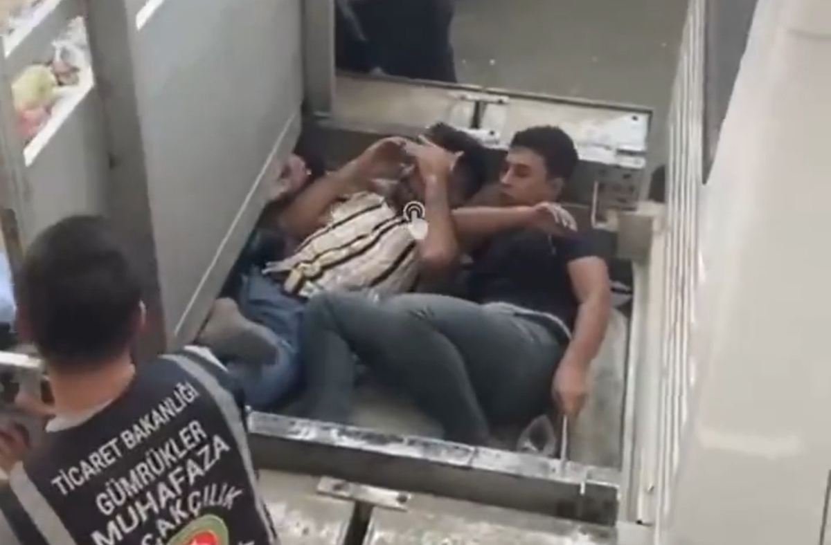 پنج نفر که زیر بار یک کامیونت مخفی شده بودند تا خود را به اروپا برسانند، در ترکیه بازداشت شدند. لحظه کشف شدن و خروج آن‌ها را از کامیونت می‌بینید.