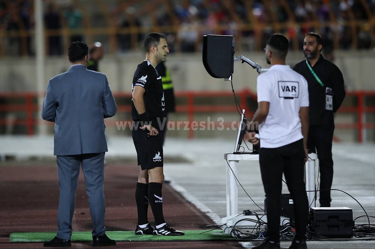 تنها چهار دقیقه از مسابقه سپری شده بود که محمدجواد محمدی روی خط محوطه جریمه سرنگون شد تا برخوردی مشکوک به پنالتی شکل بگیرد. پیام حیدری پس از این برخورد دقایقی با اتاق VAR صحبت کرد و سپس دستور به ادامه بازی داد.