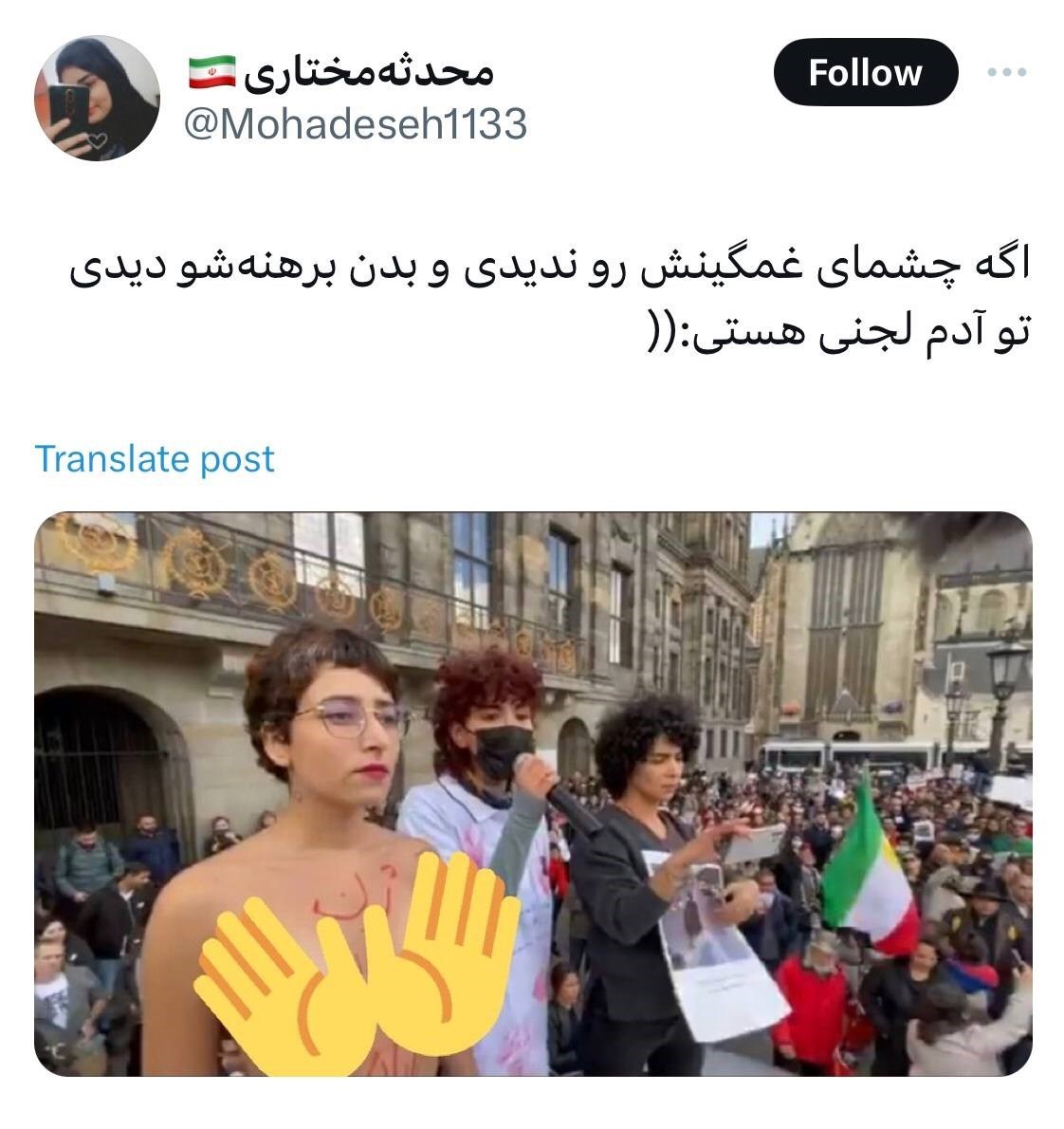 او تلویحاً آن بازیگری که خودش لخت شده را حمایت میکند اما مردمی که خواسته یا ناخواسته تصویر مبتذل او را دیدهاند محکوم میکند؛ همینقدر بی منطق؛ همینقدر ریاکارانه و همینقدر نابخردانه.