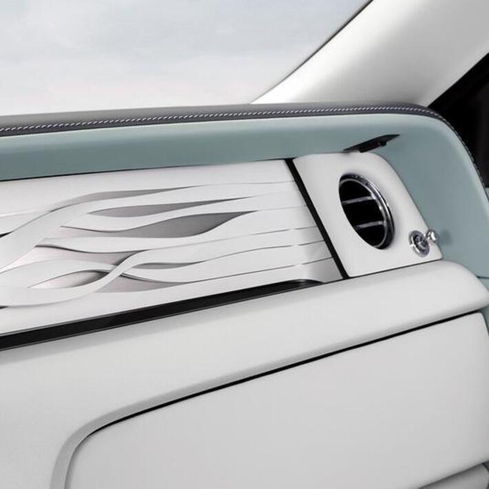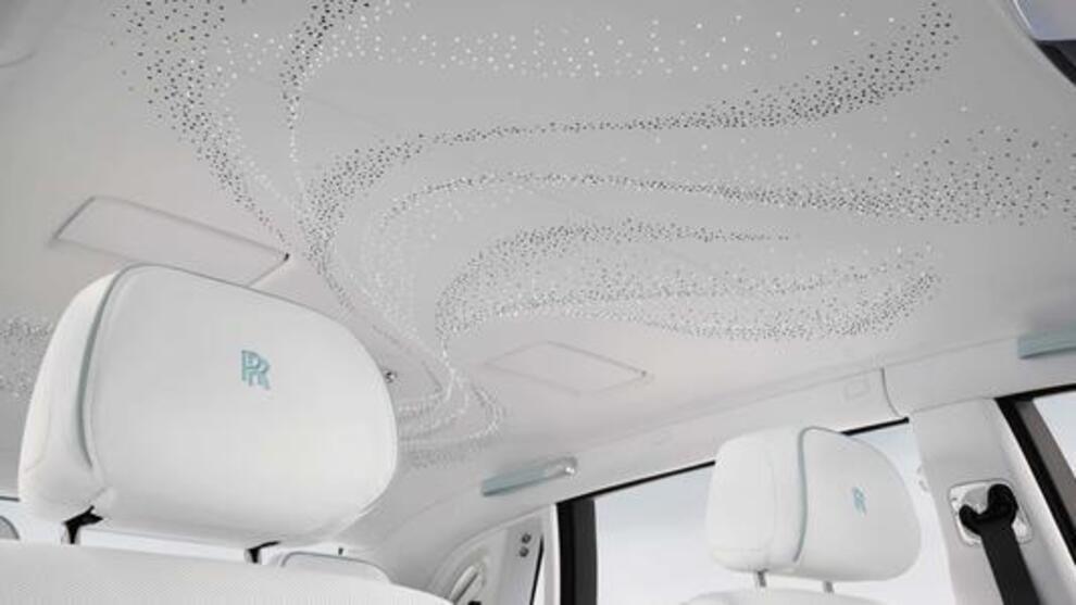رولز-رویس میگوید بیش از دو سال و نیم برای توسعه طرح داخلی این خودرو صرف کرده است. سقف کهکشانی به عنوان امضای کار رولزرویس اینجا هم حضور دارد که البته در یک الگوی سفارشی ساخته شده است که تداعی کننده حس حرکت و جاری شدن برای بیننده است. دربها و صندلیها دارای حداقل ۳۶ بخش از الگوهای گلدوزی شده هستند.