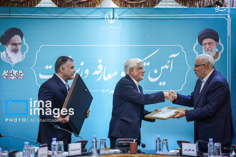 مراسم تکریم جواد اوجی و معارفه محسن پاکنژاد بعنوان وزیر نفت یکشنبه ۱۸ شهریور ۱۴۰۳ با حضور محمدرضا عارف معاون اول رئیس جمهور در وزارت نفت برگزار شد.