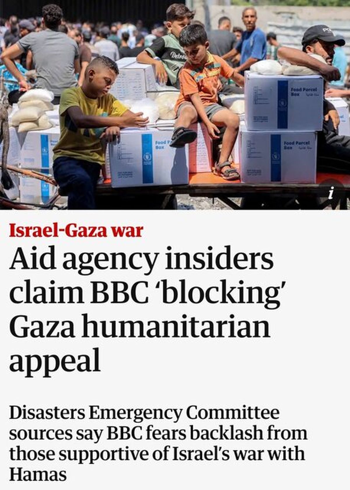 به گزارش تابناک، روزنامه گاردین گزارش داد، شبکه تلویزیونی بی بی سی از پخش یک آگهی بشردوستانه در مورد بحران انسانی موجود در غزه به خاطر ترس از واکنش طرفداران رژیم صهیونیستی خودداری کرده است.